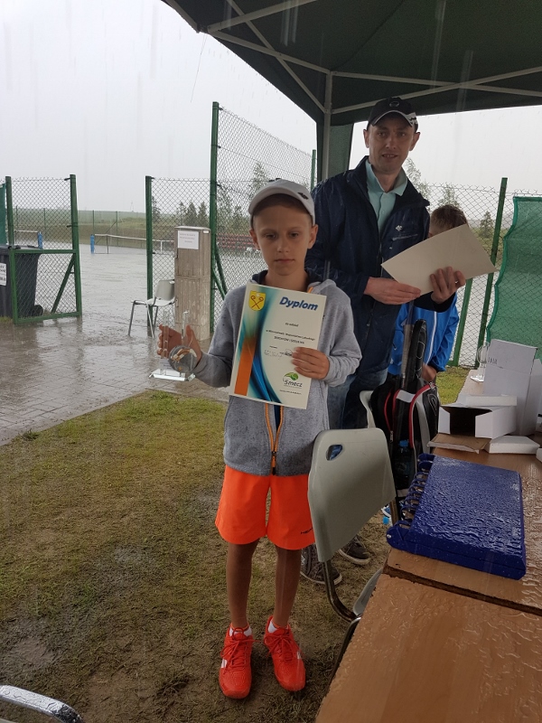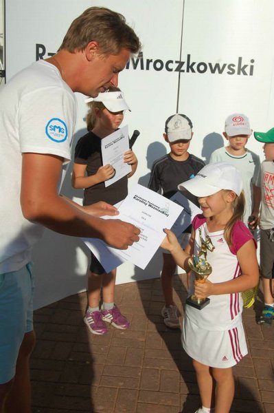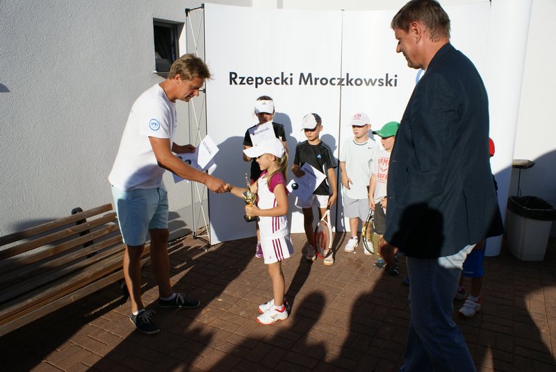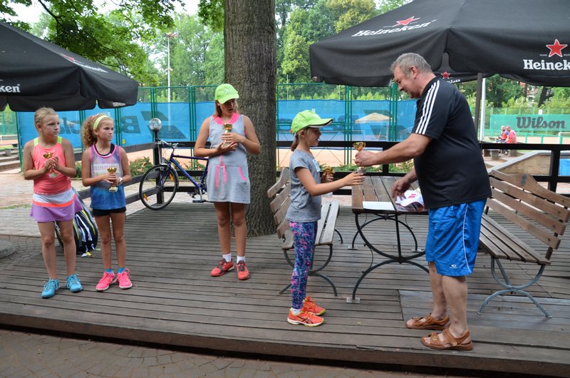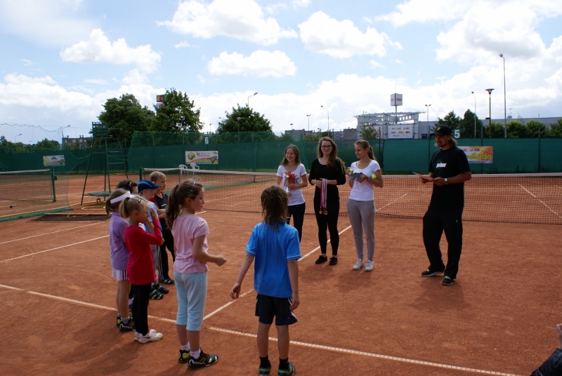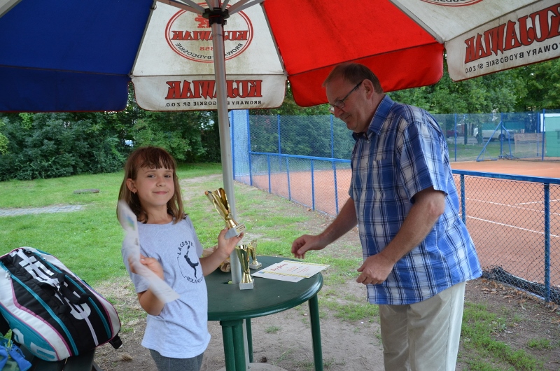 W kategorii do lat jedenastu, siedmioletnia Dominika wyszła z grupyna drugim miejscu (przegrała po tiebreaku jeden mecz i wygrała 3 spotkania) i spotkała się z Filipem Lewaszkiewiczem ze Słońska, zwycięzcą drugiej grupy. Przewaga wieku i siły była zbyt duża przy pełnych rozmiarach kortu i mimo, iż wszystkie 4 gemy były zacięte skończyły się zwycięstwem Filipa. W meczu o III-e miejsce Dominika zrewanżowała się Julii Stolarskiej za porażkę grupową, pokonując swoją koleżankę 6:3 (w meczach o I-e i III-e miejsce rozgrywano pełnego seta).