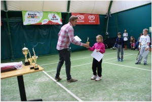 Przypomnijmy, iż celem cyklu (trzy turnieje) jest awans do turnieju masters, w którym główną nagrodą będą upominki sportowe oraz spotkanie z Karoliną Woźniacką (była nr 1 światowego, kobiecego tenisa). W kategorii do lat ośmiu ponownie IV-e miejsce i puchar wywalczyła siedmioletnia Dominika Podhajecka. W kategorii do lat 10 miejsce 5-6 zajęła Wiktoria Podhajecka. Warto podkreślić, iż lubuszankibyły najlepsze wśród dziewczynek i obydwie odnotowały porażki wyłącznie z chłopcami.