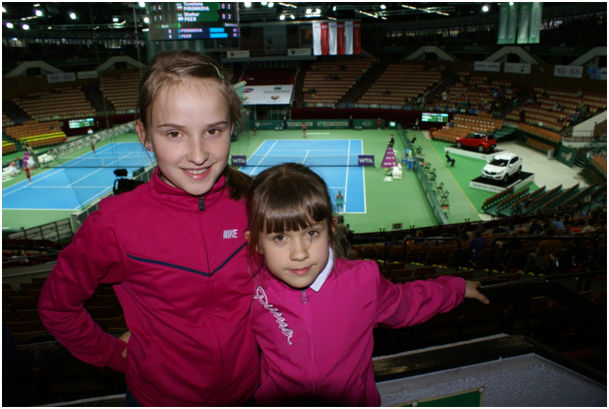 Wiktoria i Dominika podczas meczu Shahar Peer (WTA - 90, wcześniej 11) - Tsvetana Pironkowa (WTA-40)