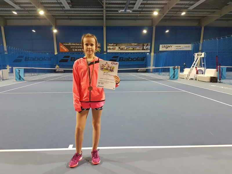 Dwa brązowe medale dwunastolatki w ogólnopolskiej rywalizacji PZT do lat czternastu to świetny wynik, tym bardziej żeuzyskany na najmniej lubianej wolnej mączce, a Dominikęw singlu pokonała … kontuzja i mogło być jeszcze lepiej. Z powodu urazu lubuszanka nie wystąpi w najbliższym planowanym turnieju Kadetek (do lat 16-u) w Sobocie k. Poznania.