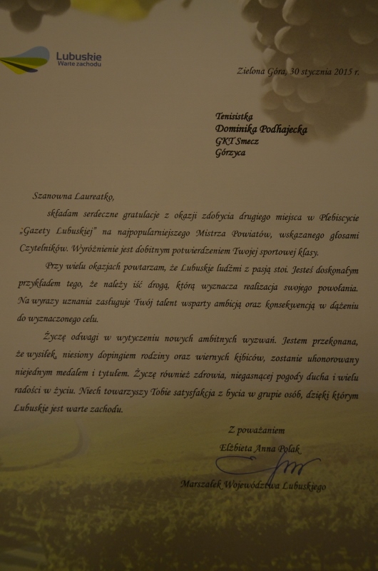 Dominika na Gali Mistrzów Sportu w Drzonkowie